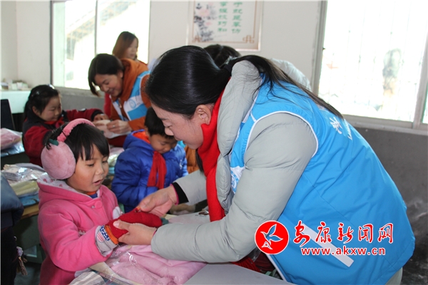 捐贈(zèng)儀式上,志愿者給孩子們發(fā)放了公益組織提供的包括書包、鋼筆、耳護(hù)、手套、棉襪、保暖內(nèi)衣在內(nèi)的,價(jià)值200余元的六件套大禮包,并親手為孩子們戴上了手套和耳護(hù),鼓勵(lì)孩子們要好好學(xué)習(xí),長(zhǎng)大后做國(guó)家的棟梁,像他們一樣用愛心去回報(bào)社會(huì)。平利援少會(huì)會(huì)長(zhǎng)介紹了協(xié)會(huì)的概況和此次活動(dòng)的目的,希望孩子們?cè)诟惺軔鄣耐瑫r(shí),要傳遞愛,要做一個(gè)對(duì)社會(huì)有用的人;大貴鎮(zhèn)中心小學(xué)負(fù)責(zé)人向援少會(huì)一行表示誠(chéng)摯的感謝,告訴孩子們要認(rèn)真學(xué)習(xí),知恩感恩。溫暖的禮物,鼓勵(lì)的話語,讓孩子們?nèi)玢宕猴L(fēng),孩子們紛紛表示要立志樹立遠(yuǎn)大理想,刻苦學(xué)習(xí),長(zhǎng)大后能為社會(huì)做出貢獻(xiàn),將這份愛心傳遞下去!