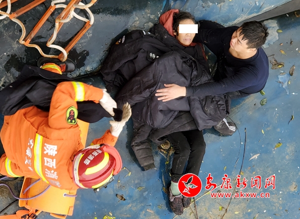 這時(shí),消防大隊(duì)帶著工具也趕到了現(xiàn)場(chǎng),在等待消防大隊(duì)布置軟梯的時(shí)間里,李強(qiáng)和何釗顧不上自己全身抽搐,又冷又疼的身體,第一時(shí)間將老人放平,把自己脫下的棉服緊緊裹在老人身上,抱著老人給她取暖,他們不斷呼喊老人,用按壓的方式對(duì)老人進(jìn)行急救。