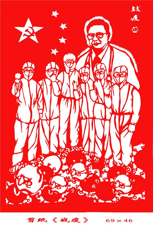 “每天從各個(gè)方面?zhèn)鱽砜箵粢咔榈暮芏嘈侣,心里備受感?dòng)。作為共產(chǎn)黨員,我也要發(fā)揮個(gè)人特長,用剪紙記錄下這個(gè)時(shí)代。希望能夠通過剪紙這項(xiàng)傳統(tǒng)藝術(shù),向一線抗疫的英雄們表達(dá)敬意,為這場沒有硝煙的戰(zhàn)爭吶喊助威。”周玉珍老師說。