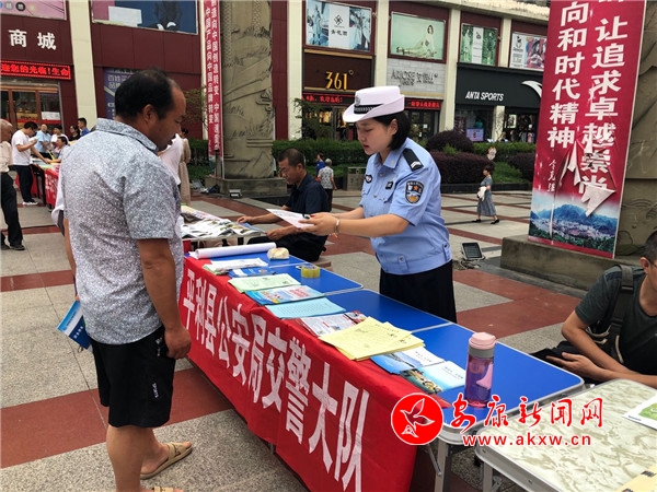 在活動(dòng)現(xiàn)場(chǎng),宣傳民警將精心制作的交通安全宣傳展板、宣傳橫幅擺放在宣傳展示點(diǎn),吸引了眾多群眾駐足觀看。民警就交通管理、交通違法和車駕管業(yè)務(wù)等問題向群眾進(jìn)行了解答,耐心講解了無證駕駛、酒后駕駛、騎摩托車不佩戴安全頭盔、開車不系安全帶、駕駛超標(biāo)電動(dòng)車等道路交通違法行為的危害性。并向群眾發(fā)放交通安全宣傳資料,有效增強(qiáng)了群眾的交通安全意識(shí),文明交通意識(shí)和法制意識(shí)。