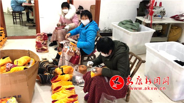 棉布鞋制作工藝簡單易學(xué),社區(qū)工廠離家近,既能工作又能照顧老人與小孩,對于當(dāng)?shù)亓羰貗D女而言這是一份不錯(cuò)的工作,王端江的招工難題就這么解決了。王端江在產(chǎn)品制作過程中毫不馬虎,產(chǎn)品選料考究、縫制精細(xì),價(jià)格也很實(shí)惠,因此王端江制作的棉布鞋迅速贏得了顧客的青睞,原來他經(jīng)營的小廠房也很快發(fā)展成帶動(dòng)農(nóng)村閑散勞力就業(yè)的大工廠。隨著銷量逐年增加,棉布鞋市場也逐步擴(kuò)大,由起初的周邊市縣,拓展到湖北、甘肅、湖南等地。王端江的社區(qū)工廠依托發(fā)展棉布鞋小產(chǎn)業(yè),常年帶動(dòng)70余名群眾務(wù)工就業(yè),務(wù)工人員月均工資超過2000元。