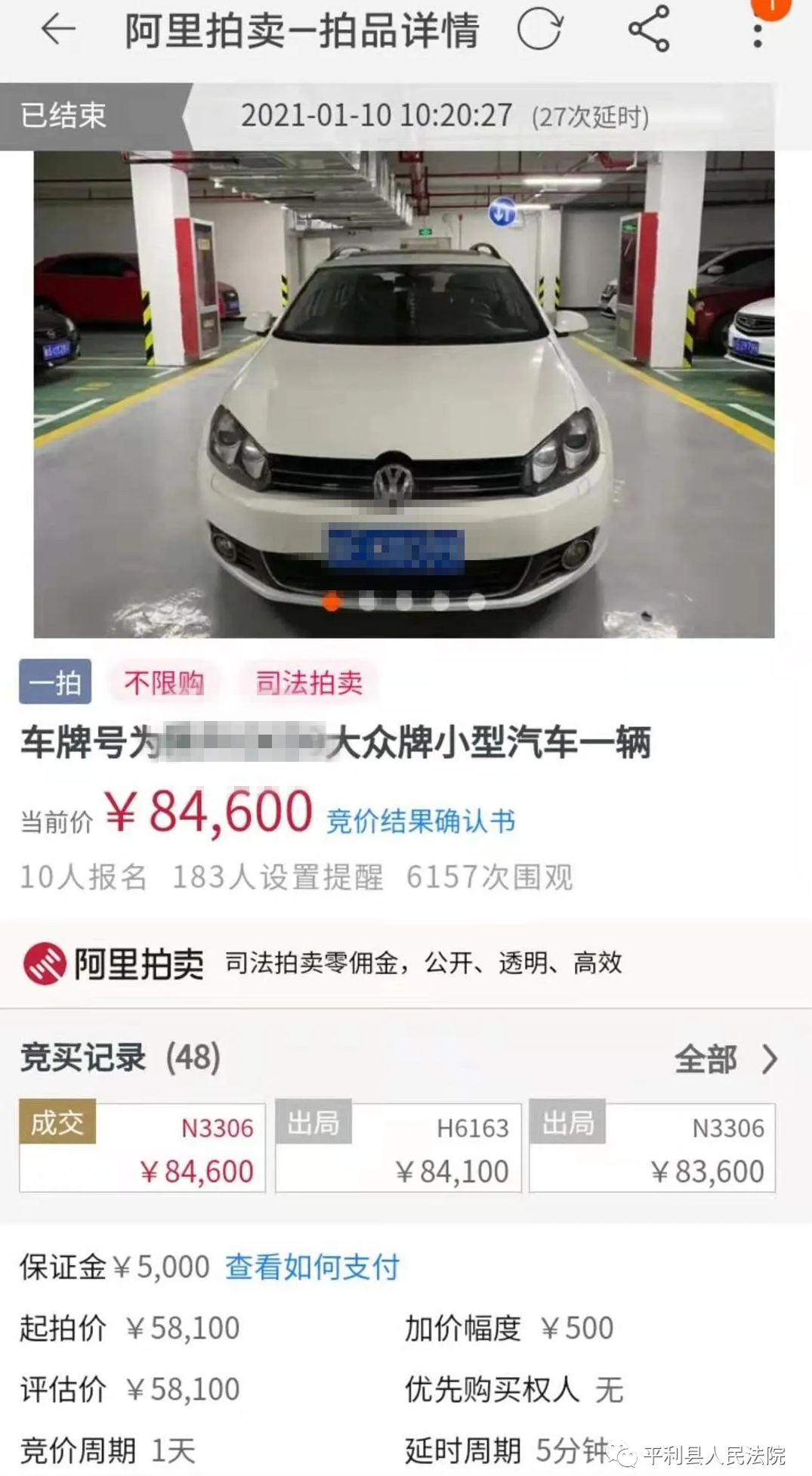本網(wǎng)訊(通訊員 鄭欽)成交了!1月10日上午十點(diǎn)二十分,平利法院通過淘寶網(wǎng)網(wǎng)絡(luò)司法拍賣的一部大眾牌小型汽車以高出評估價百分之四十五的價格成功拍出。