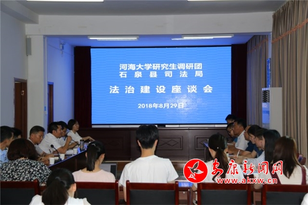 安康新聞網(wǎng)訊(通訊員 郭健)近日,在河海大學(xué)后勤服務(wù)中心副主任胡忠平帶領(lǐng)下,河海大學(xué)部分研究生走進(jìn)石泉縣司法局進(jìn)行調(diào)研考察活動。副縣長劉成剛一同調(diào)研。