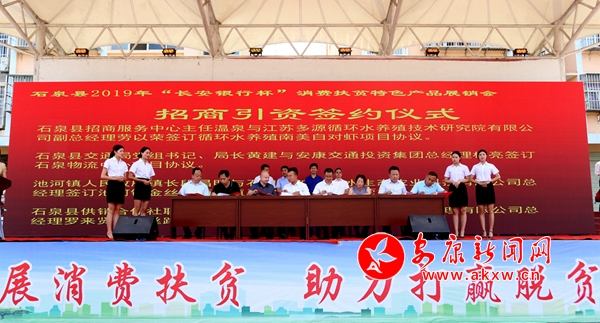 現(xiàn)場(chǎng)還簽訂了循環(huán)水養(yǎng)殖南美白對(duì)蝦、石泉物流中心、池河鎮(zhèn)金絲皇菊種植及農(nóng)副產(chǎn)品加工、絲路桑海生態(tài)酒店四個(gè)招商引資協(xié)議。