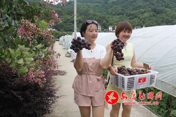 最開始請(qǐng)外地的農(nóng)技專家教,后來自己摸索,譚文軍這些年已經(jīng)成了這方面的行家。他介紹說,絲銀壩靠近饒峰河,地勢(shì)開闊,空氣好,光照適宜,加上采用農(nóng)家有機(jī)肥,葡萄成熟后口感清甜,果肉細(xì)膩爽滑,F(xiàn)在,他每年靠種葡萄純收入都在60萬元左右。