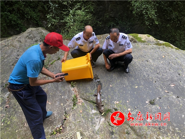 石泉縣漁政部門放生一條野生大鯢