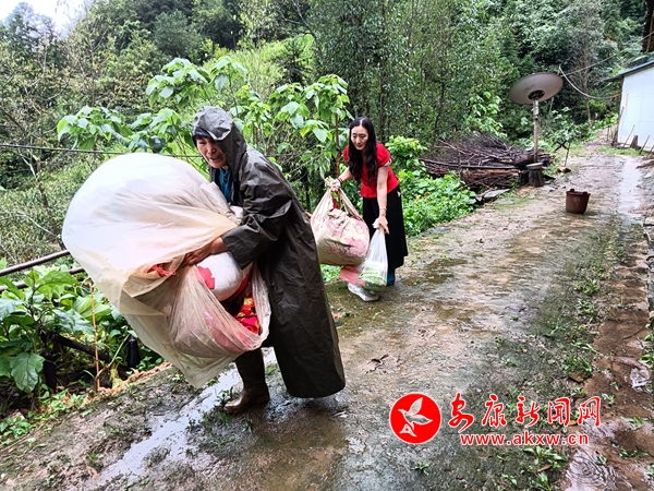 “我是自愿出來清掃道路的,雨這么大,干部忙不過來,我也想干點啥。”住在集鎮(zhèn)社區(qū)的王永芝說道。她主動拿起掃把,戴著雨帽,清掃著山腳下的碎石和泥水。