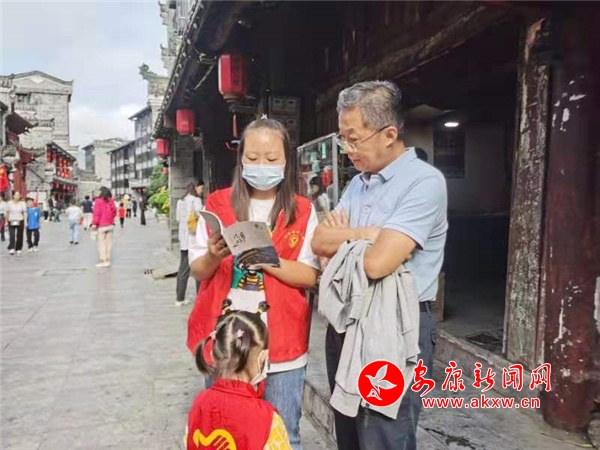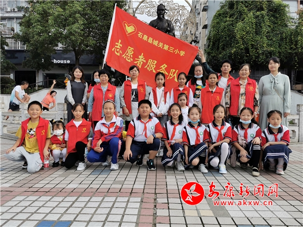 國(guó)慶期間,由石泉紅領(lǐng)巾組成的志愿者隊(duì)伍在所在鄉(xiāng)鎮(zhèn)旅游景點(diǎn)向各地來(lái)到石泉的游客開展引導(dǎo)咨詢、秩序維護(hù)、便民服務(wù)、醫(yī)療救援和宣傳資料發(fā)放五個(gè)方面的服務(wù),迎接各方來(lái)客,助力縣域經(jīng)濟(jì)發(fā)展。在石泉老街,城關(guān)三小師生通過(guò)向游客發(fā)放宣傳圖冊(cè)、贈(zèng)送口罩等方式,提醒游客做好防疫措施;在中壩作坊小鎮(zhèn),中壩小學(xué)組織學(xué)校小導(dǎo)游社團(tuán)為游客們講解皰湯會(huì)、芝麻糖、活字印刷等非遺文化;在金蠶之鄉(xiāng),池河中學(xué)設(shè)置新時(shí)代文明實(shí)踐崗,提供旅游咨詢指引,各種貼心優(yōu)質(zhì)的服務(wù)獲得游客們的一致好評(píng)。