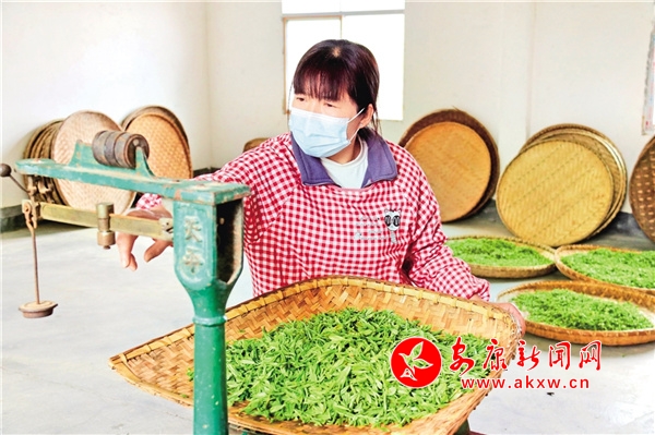 熨斗鎮(zhèn)先聯(lián)村依托1300多畝茶園,還成立了商貿(mào)公司,堅(jiān)持以企業(yè)為龍頭,帶動(dòng)廣大農(nóng)戶形成了從茶樹(shù)種植、茶葉加工、茶葉銷售到茶園觀光旅游為一體的產(chǎn)業(yè)鏈。“我們依托這個(gè)茶園基地,通過(guò)茶葉加工技術(shù)提升、品牌打造、電商銷售等渠道把靈雀山茶葉不斷推向市場(chǎng),再依托商貿(mào)企業(yè)把產(chǎn)業(yè)融合發(fā)展聯(lián)動(dòng)帶起來(lái),讓群眾持續(xù)穩(wěn)定增收!”熨斗鎮(zhèn)先聯(lián)村駐村第一書記邱衛(wèi)東說(shuō)。
