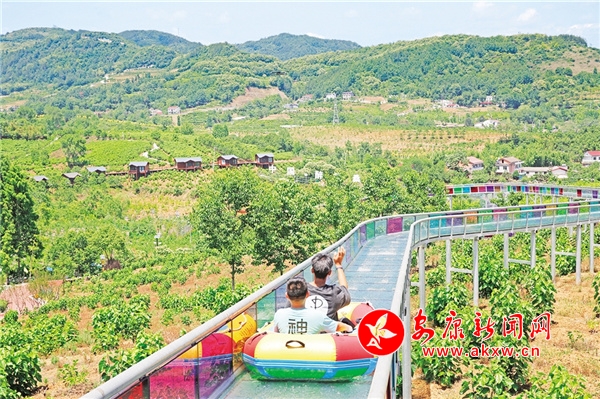 游客在明星村體驗桑海玻璃滑道
