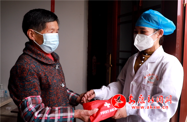 “袁阿姨,這個(gè)是免費(fèi)的防疫物品,有什么問題隨時(shí)和我聯(lián)系。”石泉縣城關(guān)鎮(zhèn)黃荊壩村,71歲的袁秀梅常年獨(dú)居,村醫(yī)劉玉琴為其發(fā)放“防疫健康包”,詳細(xì)詢問袁秀梅近期健康狀況,講解個(gè)人防護(hù)和日常身體健康監(jiān)測(cè)相關(guān)知識(shí)。收到健康包的袁秀梅很開心:“送的都是我們需要的,有你們?cè),我特別安心。”