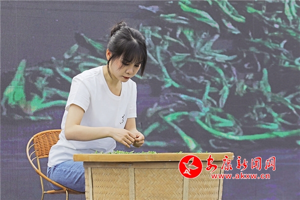 隨著舞蹈《踏春采茶》律動(dòng)的節(jié)奏響起,活動(dòng)正式拉開(kāi)了序幕。背景大屏里,檔山村民們采茶忙的身影錯(cuò)落有致。鏡頭拉近,一雙雙靈巧的手在茶樹(shù)枝丫間上下翻飛,竹簍里的綠芽帶著春天的無(wú)限生機(jī)饋以村民們豐厚的回報(bào)。“我采茶已經(jīng)有5年時(shí)間了,每年春天,都會(huì)在這個(gè)茶園采摘茶葉,一天能采摘4斤左右,一斤茶葉80元,一天下來(lái)也能賺個(gè)300多元,這個(gè)收入在農(nóng)村還算是很不錯(cuò)的。”帶著滿(mǎn)足的笑容,村民劉新燕掰著手指頭算起了經(jīng)濟(jì)賬。