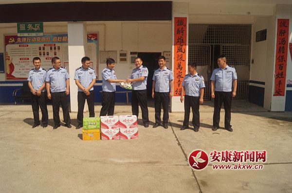 2017年7月19日上午,旬陽縣公安局黨委委員、副局長趙勇剛同志,代表局黨委,在局紀檢督察室副主任程如寧同志的陪同下,頂著烈日來到蜀河派出所對堅守在一線的公安民警進行親切的慰問并送去清涼飲品和避暑藥品。