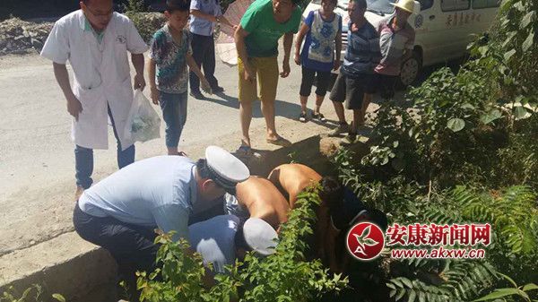 7月24日12時許,旬陽小河執(zhí)勤中隊民警在轄區(qū)開展道路巡查返回至朱家灣時,遇一名10歲的小男孩站在道路邊,邊打電話邊哭泣,不遠處有許多群眾圍觀。民警見狀立即停車詢問,小男孩哭著指向道路里側一處小涵洞。民警迅速沿著指引的地方查勘,發(fā)現(xiàn)一輛摩托車掉在涵洞下面,一男子仰面朝天躺在摩托車上,滿臉是血,身體有輕微的抽動。由于對男子的傷勢不清,不便隨意展開救援,民警立即聯(lián)系小河衛(wèi)生院醫(yī)生增援。巡查民警借來雨傘為受傷男子遮住太陽,對小男孩進行安撫。詢問其家屬的聯(lián)系方式,經對現(xiàn)場目擊證人和小男孩進行了解核實,本事故屬于單方事故。受傷男子李某駕駛摩托車帶兒子到小河鎮(zhèn)途中,時逢酷暑高溫天氣,用手擦汗時,操作不當,致使摩托車墜入涵洞,將后座小男孩甩出,駕駛人李某隨車掉到涵洞下面。圍觀群眾坦言,現(xiàn)在人心難測,如果沒有交警出面,害怕遭到誣陷。