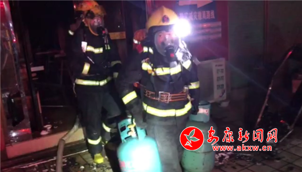 救援人員很快發(fā)現(xiàn)操作間內(nèi)外有多個液化氣罐,救援人員迅速疏散圍觀群眾,劃定安全警戒區(qū)域,同時組織人員在水槍掩護下快速轉(zhuǎn)移液化氣罐,共疏散出大小液化氣罐14個,并進行降溫冷卻。此時,救援第二力量高噴車到達現(xiàn)場,明火被完全撲滅。