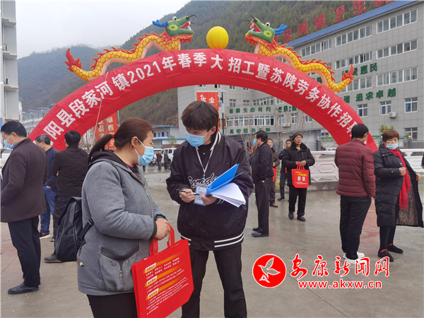 本網(wǎng)訊(通訊員 黃蓉)3月1日上午,在段家河鎮(zhèn)金水灣移民搬遷小區(qū)廣場上,舉辦了2021年春季大招工暨蘇陜勞務(wù)協(xié)作招聘會,吸引了全鎮(zhèn)11個村(社區(qū))近500余名群眾前來咨詢。
