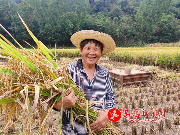 仙河鎮(zhèn)還有少部分像陳尚友這樣的傳統(tǒng)收割農(nóng)戶,受地形條件限制,很多稻田收割機無法到達,傳統(tǒng)收割方式保留至今,也成為金黃色稻田間的一道風(fēng)景線。