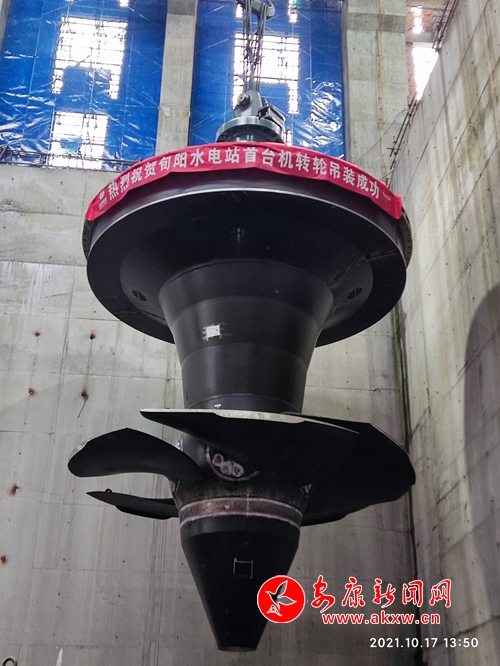 本網訊(通訊員 杜潤團 凌強)10月17日14時20分,旬陽水電廠首臺機組轉輪一次性成功吊裝就位。旬陽水電站設計安裝4臺80兆瓦的軸流轉槳式水輪發(fā)電機組,是目前漢江上最大軸流轉槳式轉輪。