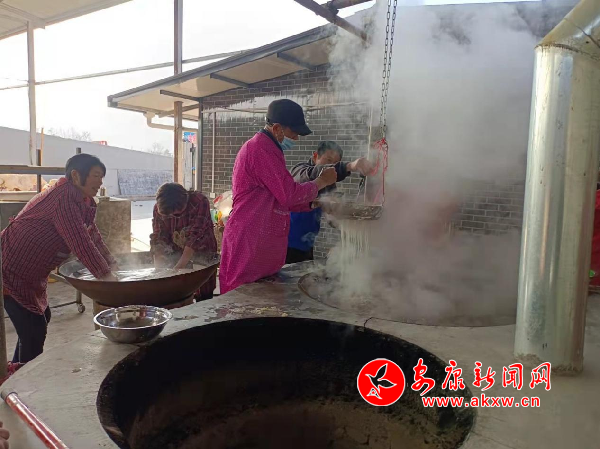 該村的紅薯粉采用傳統(tǒng)工藝,制作復(fù)雜,全制作過程不添加任何添加劑,加工的粉條色澤晶亮,食用口感順滑,勁道耐煮,讓人百吃不厭,引來了鎮(zhèn)內(nèi)鎮(zhèn)外很多顧客前來購買。該村黨支部抓住機遇,積極探索產(chǎn)業(yè)發(fā)展和群眾增收的出路,采取“支部引領(lǐng)+集體合作社+農(nóng)戶”共同發(fā)展的思路,借助產(chǎn)業(yè)發(fā)展扶持政策,村集體經(jīng)濟合作社決定建粉條加工廠。該村采用集體經(jīng)濟紅薯粉條廠主要通過收購農(nóng)戶、務(wù)工等方式帶動農(nóng)戶增收,按照紅薯粉市場價每公斤30元,可帶動11戶43人增收,集體經(jīng)濟可增收20余萬元。