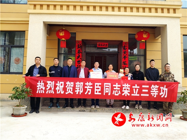 本網(wǎng)訊(通訊員 馬安奎)3月14日,旬陽(yáng)市退役軍人事務(wù)局和關(guān)口鎮(zhèn)人民政府工作人員一起前往泥溝村一組現(xiàn)役軍人郭芳臣家中,為其家屬送上了“三等功”喜報(bào)及慰問(wèn)金。