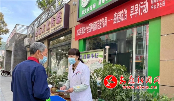 本網(wǎng)訊(通訊員 陳子賢)2022年4月15日至21日是第28個(gè)全國(guó)腫瘤防治宣傳周。為進(jìn)一步提高全社會(huì)癌癥防控意識(shí),促進(jìn)廣大居民了解癌癥預(yù)防知識(shí),主動(dòng)干預(yù)癌癥高危因素,營(yíng)造全民防癌抗癌的良好氛圍。4月20日早上,旬陽市城關(guān)中心衛(wèi)生院走進(jìn)下菜灣社區(qū),聯(lián)合社區(qū)衛(wèi)生室開展 “癌癥防治 早早行動(dòng)”為主題的全國(guó)腫瘤防治宣傳周活動(dòng)。