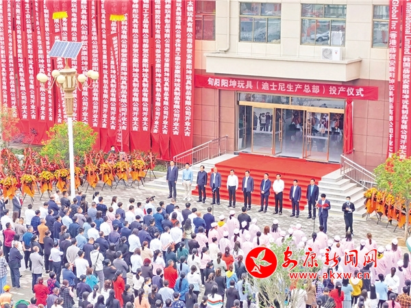 2022年5月10日,旬陽陽坤玩具(迪士尼玩具生產(chǎn)總部)投產(chǎn)儀式在蜀河新區(qū)舉行,項目年產(chǎn)1000萬件,于今年2月10日簽訂招商協(xié)議,僅用90天時間就完成了廠房裝修、設備安裝、員工招聘等工作。