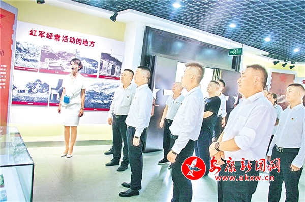 組織機關干部在旬陽市紅軍鎮(zhèn)紅色教育基地參觀學習。