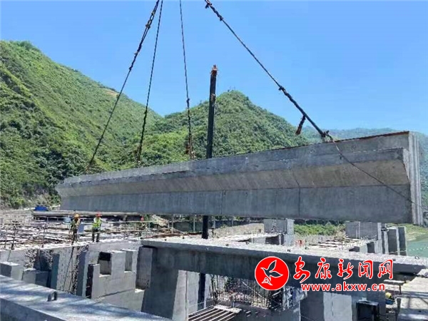 本網(wǎng)訊(通訊員 王建華 陳潔)2022年6月14日20時51分,隨著旬陽水電站大壩標(biāo)七號孔最后一榀交通梁吊裝到位,右岸壩頂交通梁全部架設(shè)完成,標(biāo)志著旬陽水電站全長462米的大壩實(shí)現(xiàn)了全線貫通。