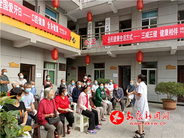 “叔叔,請(qǐng)問(wèn)您什么時(shí)間刷牙,怎么刷的?”城關(guān)中心衛(wèi)生院劉醫(yī)生通過(guò)提問(wèn)的方式走進(jìn)老人身邊,向老人們宣講健康口腔知識(shí),用通俗易懂的語(yǔ)言教會(huì)老人們正確刷牙的方法,鼓勵(lì)老人們每半年進(jìn)行口腔檢查一次,如有口腔問(wèn)題要及時(shí)發(fā)現(xiàn)、及時(shí)治療,使口腔無(wú)氣味,生活有滋味,健康有品味。