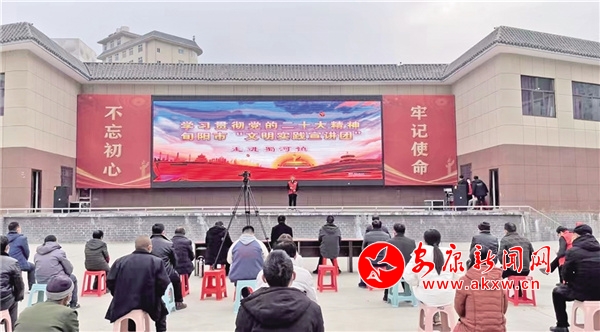 黨的二十大召開后以快板為主要表演形式的旬陽市黨的二十大精神文藝宣講隊走進農(nóng)村走進群眾,在村組院落、在廣場集市,通過表演快板《二十大精神指航向》《禮贊旬陽頌黨恩》、歌曲《黨的二十大精神放光芒》、舞蹈《二十大精神擂戰(zhàn)鼓》等節(jié)目,以群眾喜聞樂見的方式讓理論宣講“唱起來”“跳起來”“活起來”,把黨的二十大精神用群眾聽得懂、聽得進、喜歡聽的方式“送入”尋常百姓家。、