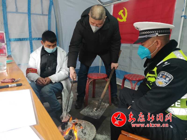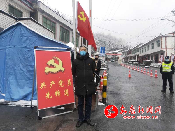 前往值守點(diǎn)的當(dāng)天,天氣突變,鵝毛般的大雪漫天飛舞。值守點(diǎn)位于縣城最北邊的山頂上,氣溫降至0度以下,盡管大家都添加了保暖衣,換上了厚衣服,但依然感覺渾身瑟瑟發(fā)抖,雙頰凍得隱隱作痛。作為東溝埡卡點(diǎn)黨員先鋒崗中黨齡最長、年齡最大的黨員,陳曉華主動要求參加首班值守。按照要求,值勤崗哨必須24小時不離人,盡管室外崗哨兩側(cè)都有高清探頭,在室內(nèi)完全可以監(jiān)控進(jìn)出的車輛和行人,但他始終堅守在室外的哨廳,維護(hù)卡點(diǎn)秩序、疏導(dǎo)通行車輛、引導(dǎo)行人登記。年輕的同志讓他進(jìn)屋休息,他說:“大家都在忙,我也不能閑著嘛。既然來了,就不能偷懶。”