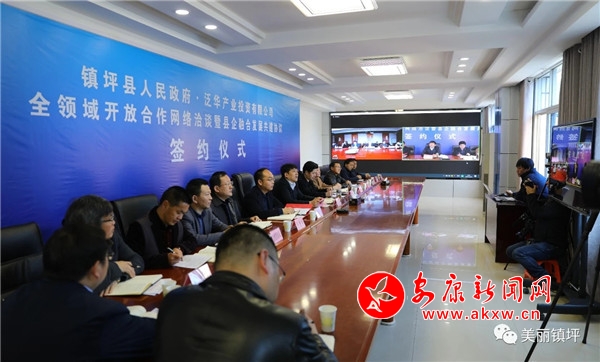 本網(wǎng)訊(通訊員 何丹)為奮力奪取疫情防控與經(jīng)濟(jì)發(fā)展“雙勝利”,深入推進(jìn)開(kāi)放招商工作,擴(kuò)大開(kāi)放水平,增強(qiáng)發(fā)展動(dòng)力。3月20日,鎮(zhèn)坪縣人民政府與泛華產(chǎn)業(yè)投資有限公司舉行了全領(lǐng)域開(kāi)放合作暨縣企融合發(fā)展合作共建協(xié)議簽約活動(dòng)。縣委副書記、縣長(zhǎng)李平和泛華集團(tuán)董事長(zhǎng)楊天舉分別在鎮(zhèn)坪和北京出席視頻洽談,并代表雙方簽約?h委常委、副縣長(zhǎng)涂世昌主持視頻簽約儀式。