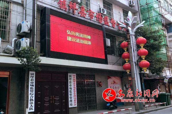 此外,鎮(zhèn)坪縣市場監(jiān)管局還借助LED大屏,滾動播放普法宣傳標語,營造良好的普法宣傳氛圍。