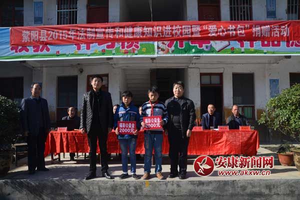 安康新聞網(wǎng)訊 (通訊員 肖寶) 在“12•4”國家憲法日暨全國法制宣傳日即將到來之際,11月26日,由紫陽團(tuán)縣委舉辦的紫陽縣2015年法制宣傳和健康知識進(jìn)校園暨“愛心書包”捐贈活動走進(jìn)斑桃小河小學(xué);顒蝇F(xiàn)場,紫陽團(tuán)縣委為全校學(xué)生購買了價值1.5萬元的愛心書包和手套,并及時發(fā)放到了每個學(xué)生的手中。