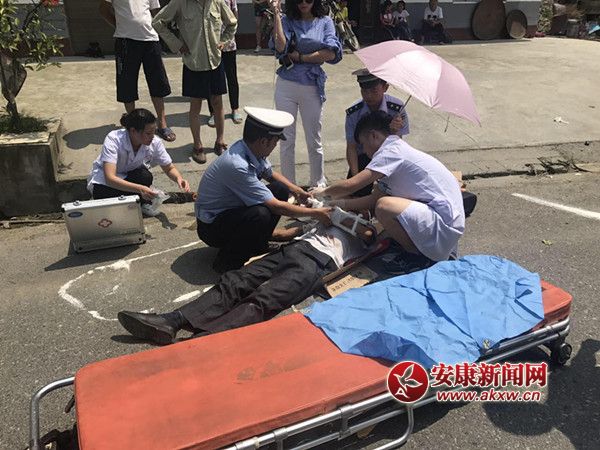 安康新聞網(wǎng)訊(通訊員 楊超)6月18日,紫陽公安局權(quán)河交警中隊民警接群眾報案,稱310省道98公里處一輛摩托車與中巴車相撞,摩托車司機(jī)頭部受傷,情況危殆。接報后,民警迅速趕赴事故現(xiàn)場發(fā)現(xiàn),碰撞后摩托車被甩至路邊,大梁及車頭解體,零部件碎片散落一地,摩托車駕駛員俯臥在公路中心線位置,頭部血流不止,左手不能移動。傷員傷情無法確定,省道通行受阻極易發(fā)生二次事故,時間每過一分鐘便多一分危險,一系列不利因素擺在民警眼前,現(xiàn)場情況十分緊急!民警冒著烈日迅速與醫(yī)護(hù)人員立即展開救護(hù)行動:一是在現(xiàn)場設(shè)置警示標(biāo)志、劃定管制警戒區(qū);二是民警與醫(yī)護(hù)人員一起對傷者進(jìn)行現(xiàn)場救治,再由救護(hù)車將傷者送院治療。由于警民的通力合作,有效地防止了二次事故的發(fā)生,為傷者的救治贏得了寶貴的時間。紫陽公安局權(quán)河交警中隊民警爭分奪秒搶救受傷群眾,使傷者脫離生命危險。