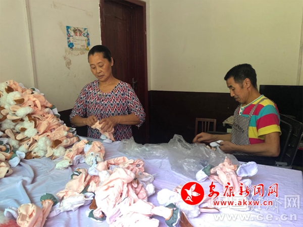 為了讓那些不能或不愿外出務工的農(nóng)戶增收有門路,陜西省紫陽縣毛壩鎮(zhèn)2018年9月從江蘇省揚州市引進迪鑫玩具工廠,從事毛絨玩具生產(chǎn)加工。