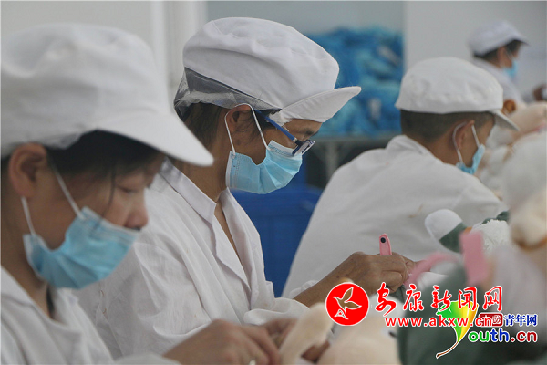 玩具廠還吸納了11名男性村民投身毛絨玩具生產加工。中國青年網記者 張博 攝