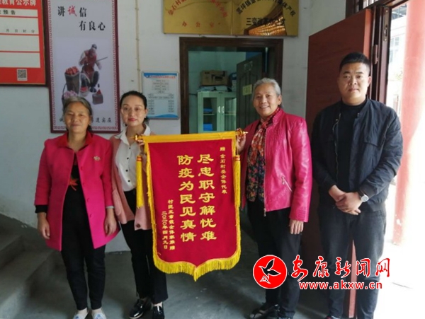 4月9日上午,長期居住在河北邯鄲的王章霞,一大早就來到了紫陽縣蒿坪鎮(zhèn)金石村村委會,將一面印有“防疫為民見真情,盡忠執(zhí)手解憂難”的錦旗送到了村干部的手上,感謝疫情防控工作以來村委會對她的幫助與支持。
