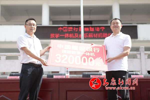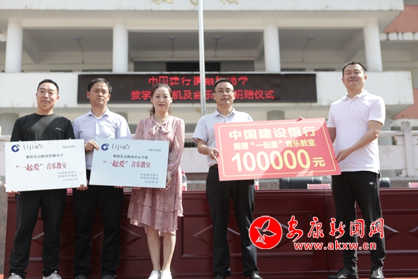 本網(wǎng)訊 (通訊員 劉成軍)金秋送爽,丹桂飄香。9月18日下午,由中國(guó)建行向紫陽(yáng)縣高橋鎮(zhèn)初級(jí)中學(xué)捐贈(zèng)的教學(xué)一體機(jī)及音樂(lè)教室設(shè)施設(shè)備的捐贈(zèng)儀式在該校操場(chǎng)舉行,紫陽(yáng)縣縣委常委、副縣長(zhǎng)張雪峰出席捐贈(zèng)儀式,麗姐助學(xué)負(fù)責(zé)人孫麗、鎮(zhèn)相關(guān)領(lǐng)導(dǎo)及高橋中學(xué)全體師生參與活動(dòng)。