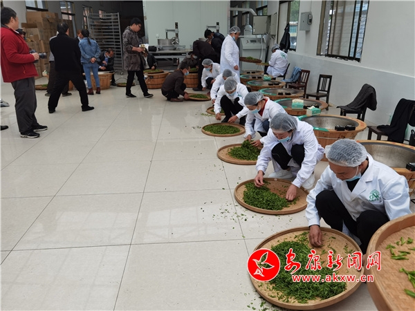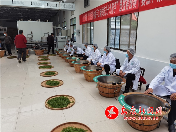 本網(wǎng)訊(通訊員 劉成軍)四月紫陽茶飄香,手工制茶競技忙。 4月7日,由紫陽縣總工會、紫陽縣農(nóng)業(yè)農(nóng)村局局、紫陽縣人力資源和社會保障局等單位聯(lián)合舉辦的2021年“紫陽毛尖傳統(tǒng)手工制作技藝十大能手”選拔賽預(yù)賽分賽場在高橋鎮(zhèn)關(guān)南春茶廠舉行。來自全鎮(zhèn)30多名手工制作技術(shù)能手紛紛同場競技,展現(xiàn)傳統(tǒng)手工制茶魅力。