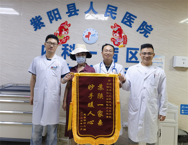 △ 患者給王強(qiáng)(右二)送來錦旗