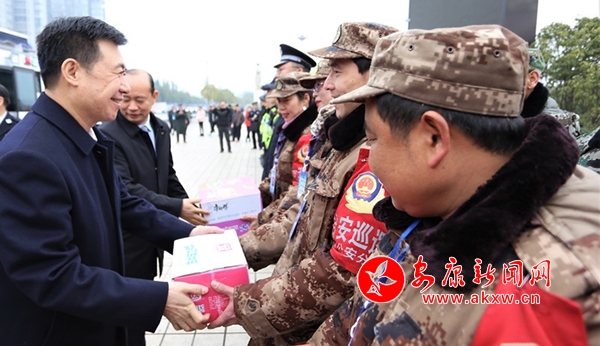 郭青一行先后到市公安局漢濱分局綜合執(zhí)法辦案管理中心、中心城區(qū)金州廣場街面智慧指揮聯(lián)控平臺執(zhí)勤點(diǎn)、漢濱區(qū)新城派出所等地,親切看望公安巡警、特警、交警、執(zhí)勤民警和紅袖章義務(wù)巡邏隊(duì)員等一線執(zhí)勤人員。每到一處,他都與大家一一握手并親切交談。他指出,過去一年,全市公眾安全感連續(xù)三年全省第一,平安建設(shè)知曉率、掃黑除惡專項(xiàng)斗爭群眾知曉率全省第一,為全市發(fā)展穩(wěn)定作出了突出貢獻(xiàn),凝聚了全市政法系統(tǒng)尤其是廣大公安干警的汗水和奉獻(xiàn),甚至是流血和犧牲。郭青向大家表示崇高敬意,帶去了市委、市政府的關(guān)心和慰問,并向全市廣大公安干警及親屬拜年。