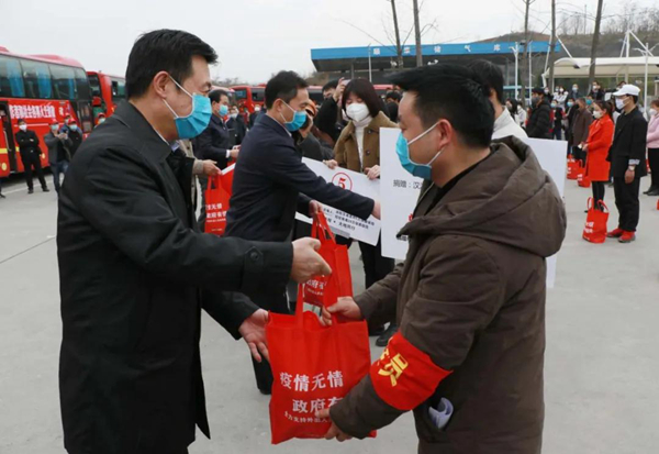 郭青在歡送儀式講話中指出,受新冠肺炎疫情影響,很多企業(yè)一度停工停產(chǎn)、復(fù)工延長,加之省際客運班線尚未完全開通,致使我市大量外出務(wù)工人員無法及時返崗就業(yè)。群眾的揪心事就是政府的操心事,群眾的困難就是政府的責(zé)任,通過開通點對點直達(dá)包車等方式,使廣大外出務(wù)工人員能夠放心外出、安全返崗,早一點實現(xiàn)致富增收,家人少一點路途牽掛。