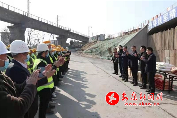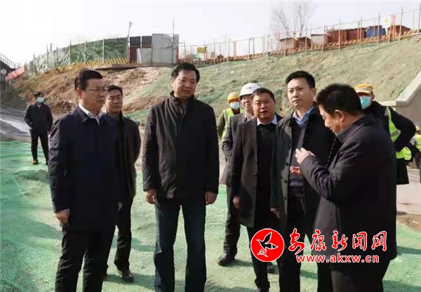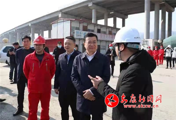 在北環(huán)線施工現(xiàn)場,高晶華指出,北環(huán)線建設是拉大城市骨架、提升通行順捷、疏解城市壓力的控制性工程。項目開工以來,大家心懷筑路夢,不畏艱與辛,主體工程推進順利,市委、市政府和全市人民對你們表示敬重和感謝。希望大家搶抓時機,排除困難,保障質(zhì)量,安全施工,確保如期建成通車。