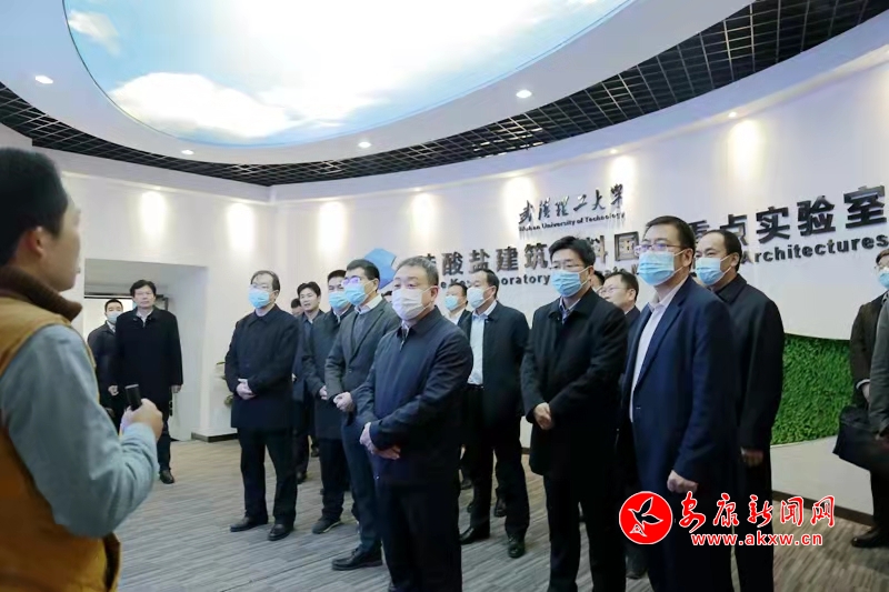 武文罡一行在武漢理工大學(xué)硅酸鹽建筑材料國家重點(diǎn)實(shí)驗(yàn)室參觀考察