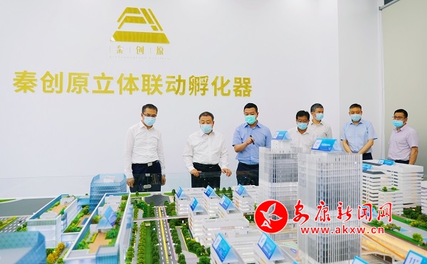 武文罡、王浩來(lái)到位于西咸新區(qū)灃東新城的秦創(chuàng)原立體聯(lián)動(dòng)孵化器總基地,詳細(xì)了解基地規(guī)劃設(shè)計(jì)、高校入駐和招商引資等情況,實(shí)地察看入駐高?萍佳邪l(fā)、成果轉(zhuǎn)化和我市擬選飛地孵化園過(guò)渡空間建設(shè)情況,對(duì)西咸新區(qū)管委會(huì)、灃東新城管委會(huì)全力支持幫助安康深度融入秦創(chuàng)原創(chuàng)新驅(qū)動(dòng)平臺(tái)表示感謝。