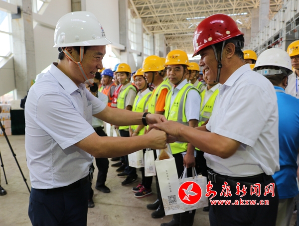 本網(wǎng)訊 (記者 艾蓓 陸青波)8月1日上午,市長、安康機(jī)場遷建工程聯(lián)合指揮部總指揮趙俊民調(diào)研機(jī)場遷建工程建設(shè)情況,看望慰問一線建設(shè)者。陜西建工集團(tuán)公司副總經(jīng)理?xiàng)詈I,西部機(jī)場集團(tuán)公司副總經(jīng)理?xiàng)钣论拢姓貢L陳伍文參加調(diào)研慰問。