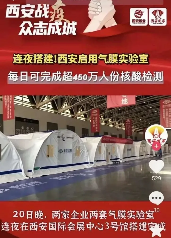 近日,短視頻平臺(tái)有網(wǎng)民發(fā)視頻稱“西安國際會(huì)展中心正在建方艙醫(yī)院”,經(jīng)核實(shí),該信息為謠言,實(shí)為“迪安雷迪”氣膜實(shí)驗(yàn)室,用于核酸檢測工作。