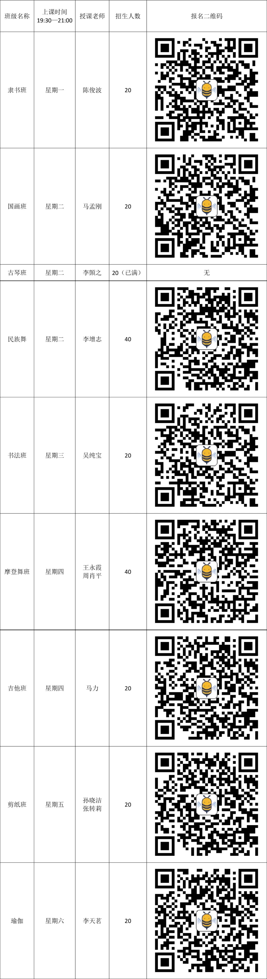 書(shū)畫(huà)剪紙類四樓書(shū)畫(huà)室教室、舞蹈類二樓排練廳、吉他四樓音樂(lè)教室、瑜伽四樓瑜伽教室、古琴四樓古琴教室