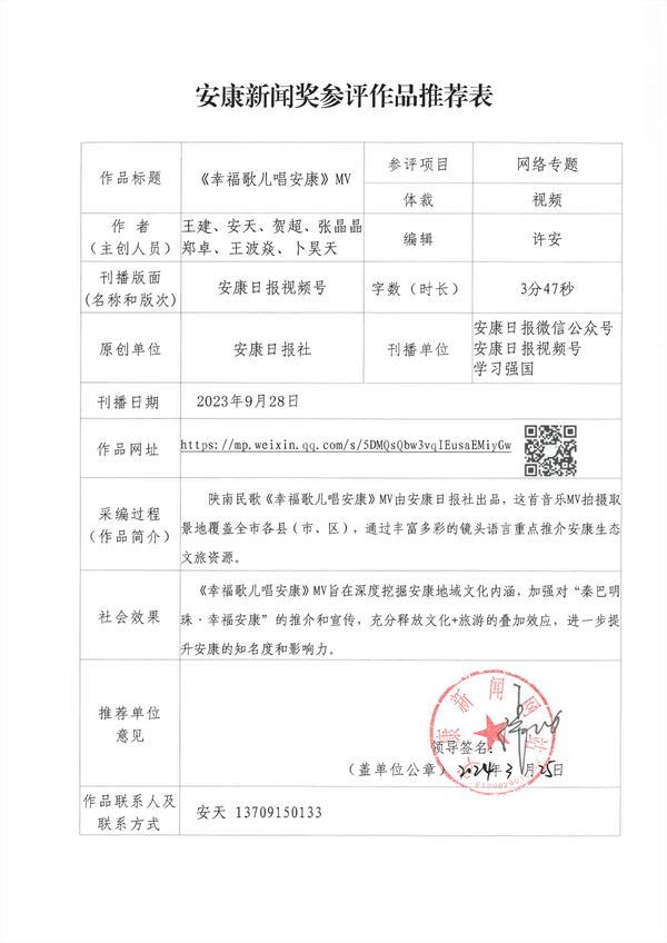 經(jīng)過(guò)編委會(huì)推薦、社黨委研究決定,擬推薦以下13件新聞作品參評(píng)2023年度“安康新聞獎(jiǎng)”。公示時(shí)間從2024年3月25日至2024年3月29日,公示期為5個(gè)工作日。如有不同意見(jiàn),請(qǐng)向安康日?qǐng)?bào)社機(jī)關(guān)紀(jì)委、新聞管理部反映。nyB安康新聞網(wǎng)